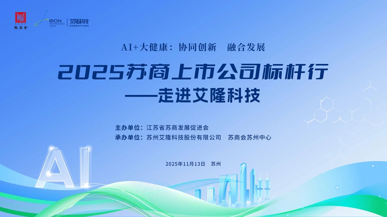 11月13日,由江蘇省蘇商發(fā)展促進(jìn)會(huì)(以下簡(jiǎn)稱“蘇商會(huì)”)主辦、蘇商會(huì)蘇州中心和蘇州艾隆科技股份有限公司(以下簡(jiǎn)稱“艾隆科技”)承辦的“2025蘇商上市公司標(biāo)桿行——走進(jìn)艾隆