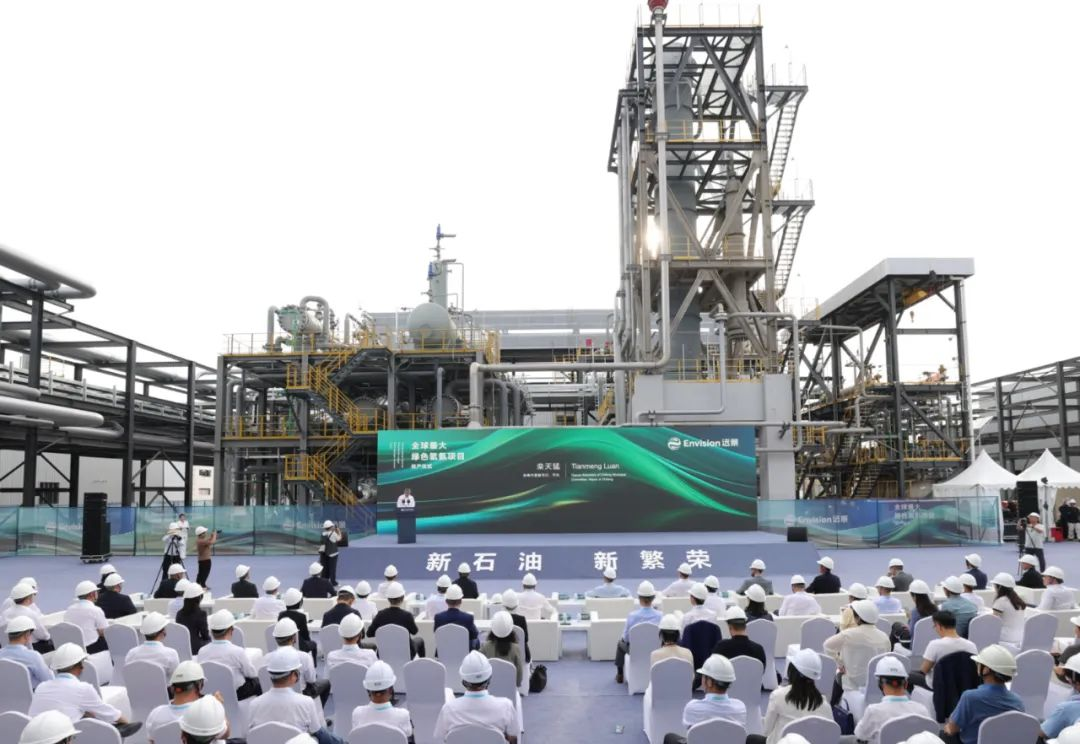 7月8日,由遠(yuǎn)景打造的全球最大152萬(wàn)噸綠色氫氨項(xiàng)目首期32萬(wàn)噸在內(nèi)蒙古赤峰建成投產(chǎn),成為全球首個(gè)商業(yè)化運(yùn)營(yíng)的綠色氫氨工程。遠(yuǎn)景董事長(zhǎng)張雷和赤峰市市長(zhǎng)欒天猛分別致辭,并與來(lái)自全球的嘉賓見證這一新能源發(fā)展的歷史時(shí)刻。