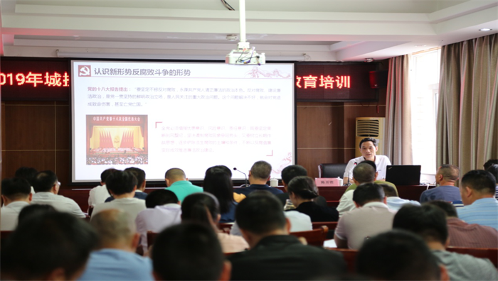 發(fā)布時(shí)間:2019-04-30 作者:文:梁宇 嚴(yán)海珍 圖:陳世染 岑瀚 來源:本站原創(chuàng) 審核:鄧永劍為全面提升工程項(xiàng)目管理水平,增強(qiáng)廉政風(fēng)險(xiǎn)防范意識,提高反腐倡廉能力與水平。2019年4月29日,城投集團(tuán)在七樓大會議室舉辦工程管理人員業(yè)務(wù)知識及廉潔自律教育培訓(xùn)。集團(tuán)安全管理人員、法務(wù)審計(jì)人員、工程技術(shù)人員等相關(guān)業(yè)務(wù)人員80人參加了培訓(xùn)。本次培訓(xùn)由市城投公司高級工程師黃彬、賀州市紀(jì)委駐賀州市國資委紀(jì)檢組組長陳開鏗主講。培訓(xùn)內(nèi)容包括工程管理理論知識、工程管理人員廉潔教育等知識。