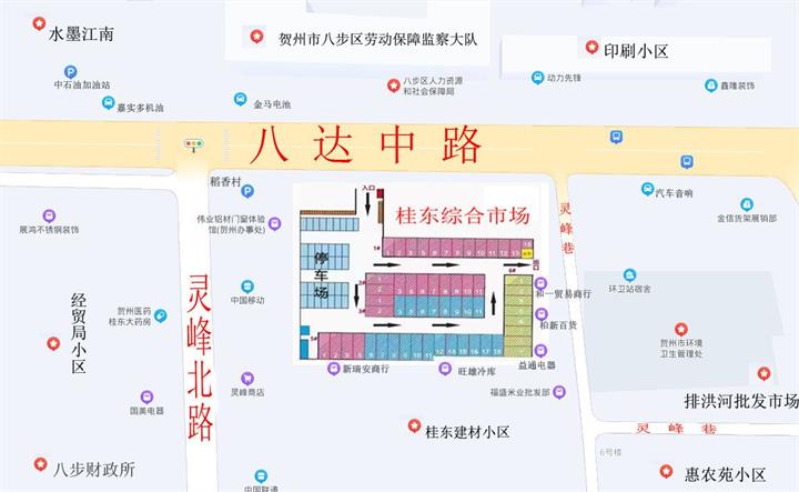 地址位于賀州市八達(dá)中路32號,地理位置優(yōu)越,在靈峰北路與八達(dá)中路交界處,屬賀州市城區(qū)雜貨批發(fā)商圈核心,一墻之隔有三大電信運(yùn)營商,人流密集、交通便利。
