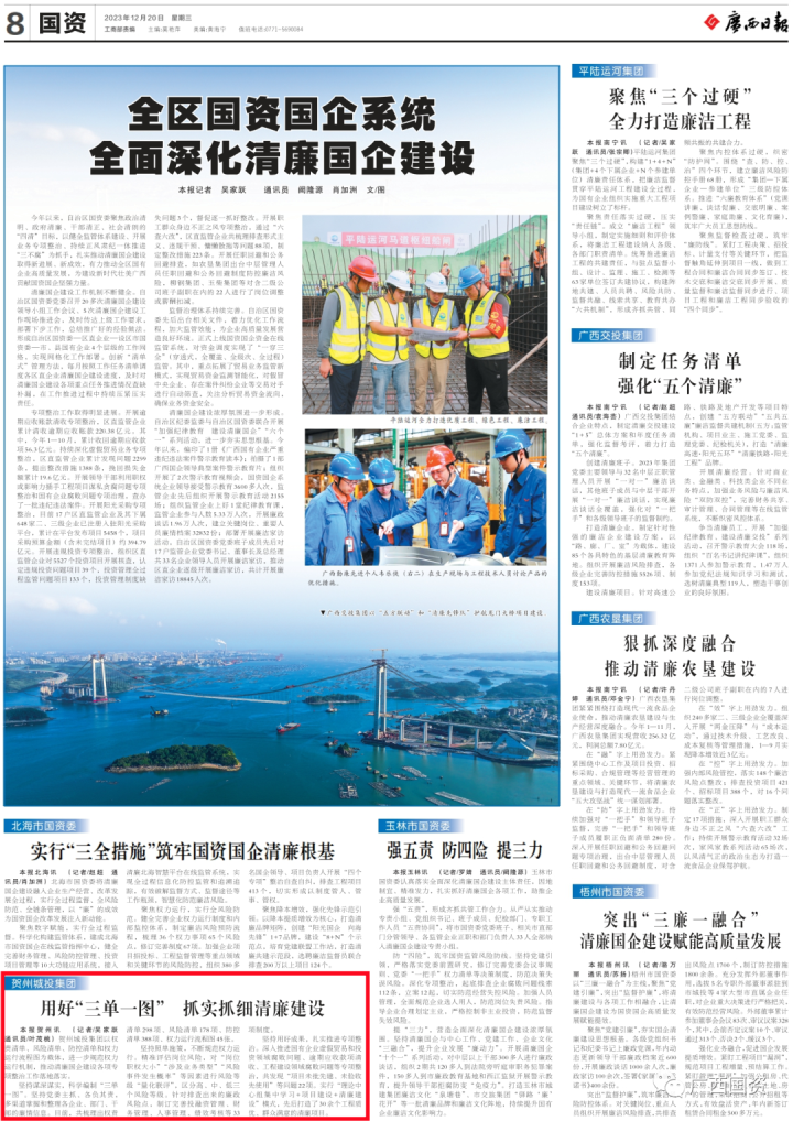 賀州城投集團(tuán)以權(quán)責(zé)清單、風(fēng)險清單、防控清單和權(quán)力運行流程圖為載體,進(jìn)一步規(guī)范權(quán)力運行機(jī)制,推動清廉國企建設(shè)各項專項整治工作落地落實。