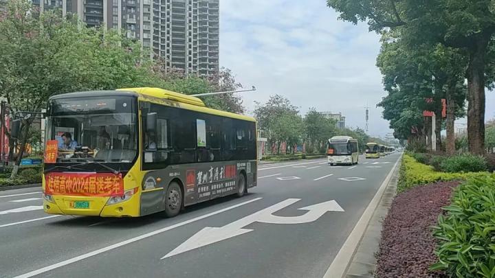 高考期間,送考公交車輛均統(tǒng)一張貼標識,提前在桂梧高中、賀州市第五高級中學、賀州外國語學校等候,將約1100名考生“點對點”送達考點,待考試結(jié)束后,再將考生安全送回學校,大大減少了考生的通勤時間。