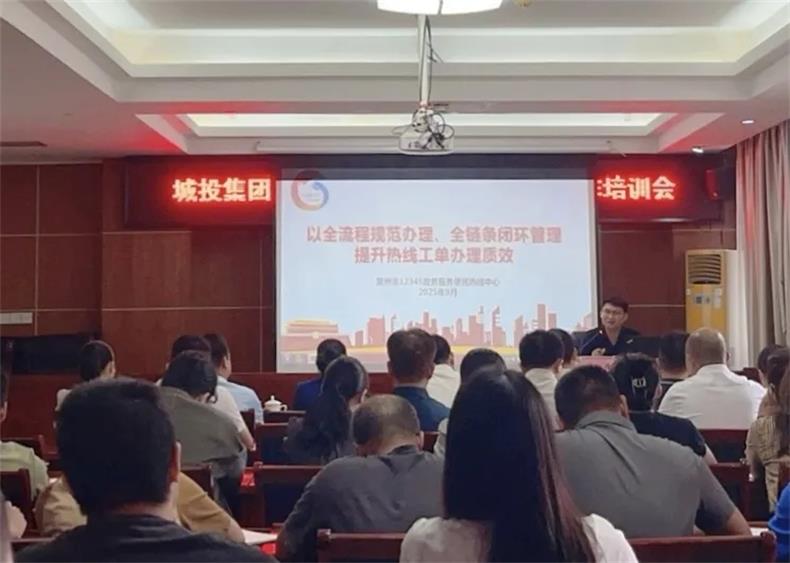 為切實提升12345熱線工單辦理質(zhì)效,更好回應群眾訴求,9 月 24 日,城投集團組織召開 12345 熱線工單辦理工作專題培訓會。集團黨委副書記、職工董事、工會主席陸劍如主持會議,市 12345 熱線中心干部康作偉、話務(wù)班班長高時受邀授課并開展現(xiàn)場答疑,集團各子公司分管領(lǐng)導、部門負責人及工單承辦人員共計30 余人參加培訓。