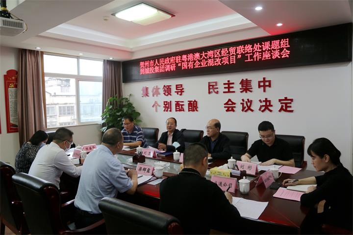 賀州市人民政府駐粵港澳大灣區(qū)經貿聯絡處課題組到城投集團開展調研2022-05-10